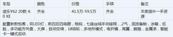 20款日产尼桑途乐XE搭载V6 4.0发动机,275马力,长宽高分别为5164*1999*1955mm,最小离地间隙为287mm,比兰德酷路泽还要高出62mm。中东版途乐拥有强大的全时四驱系统,无论是公路上还是复杂路况它都有精彩的表现。中东版途乐搭载了一套地形反馈系统给四轮的动力以及悬挂系统都可以及时进行调整,在越野配置方面要比同级别的兰德酷路泽要高出一个级别。(更多车型价格配置详情致电文章底部联系方式)