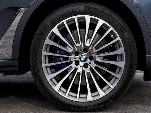 轮胎方面:全新宝马X7标配20英寸轮毂,21以及22英寸轮毂属于选配件。22寸轮毂规格为:275/40 R22