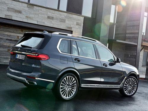 2019款宝马X7的尾部后备箱采用上下对开的开门方式,贯穿式的尾灯配合一整根镀铬装饰条,符合当下的潮流,车尾部的线条设计也非常丰富,排气采用了双边单出的设计,处处都彰显着大气两个字。