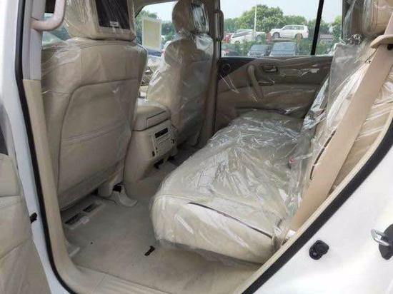19款尼桑途乐OPT版乘坐空间十分充裕,前排横向空间和纵向空间都非常充裕,座椅宽大厚实,低配采用织物材质,高配车型为真皮包裹,途乐Y62给中间座位同样配有头枕头,并在扶手箱内设有两个杯架。前排支持腰部支撑调节,新车第二排空间相当充裕,此外还可以放倒,Y62全系中央扶手箱设有冰箱功能,夏季在也不用担心没有冷饮了。