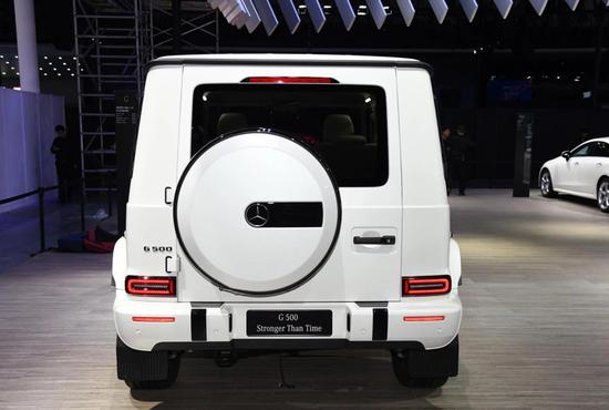 大G的备用轮胎放在了车尾的地方,这一设计给车内空间做到了足够大的让步,并且在轮胎后面镶嵌着奔驰的车标,整体显得非常完美,也算是间接地表示了这个备胎的尊贵气息。