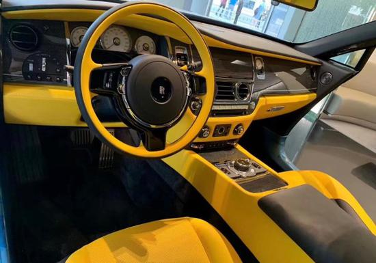 劳斯莱斯跑车-魅影中控与古斯特 (配置|询价)完全相同,计十分古朴,顶级材料与精致手工搭配出了顶级豪华车才有的氛围,凡是能触及的地方均有皮质或实木覆盖。三辐皮质包裹方向盘的盘辐较大,设计精致复古,并带有4向电动调节,调节更加精准,行车电脑信息可通过左侧拨杆切换,操作较为简单,整体给人一种沉稳扎实的感觉。