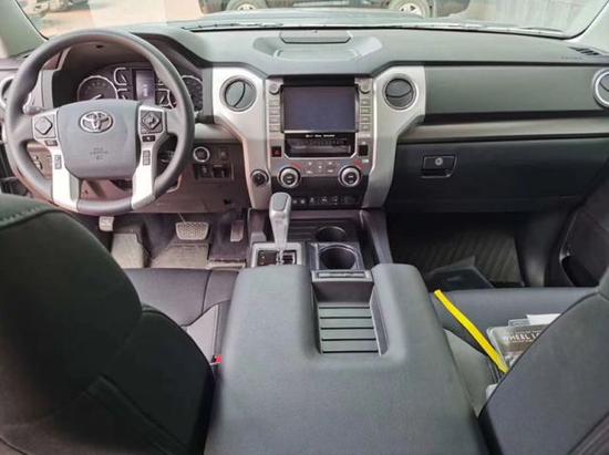 20款丰田坦途内饰设计风格感觉比较熟悉,依旧是宽大的中控台搭配各种大尺寸按键、旋钮的组合,配色方面采用深灰色与浅灰色搭配为主,可以很清楚的发现驾驶员一侧的色调以浅色调为主,作为一款皮卡,坦途内饰的用料和做工明显有过于“豪放”之嫌,中控台大面积的硬塑料材质说明它还是一款实用性至上的车型