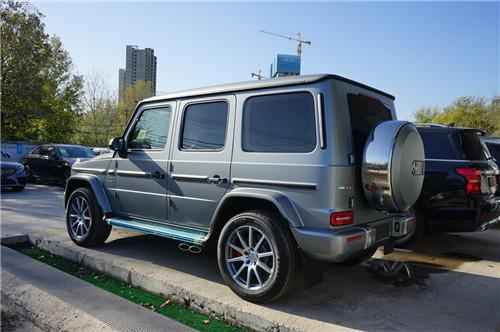 20款奔驰G63侧面上与上代车型差别不大,依旧是非常反正的设计,看起来非常的复古,轮眉的设计也依旧硬朗,可以看得到这部车的红色刹车卡钳,营造出来的运动气息还是非常浓厚的。整车的腰线设计没有半点的拖拉,所带来的一体感更加强烈。