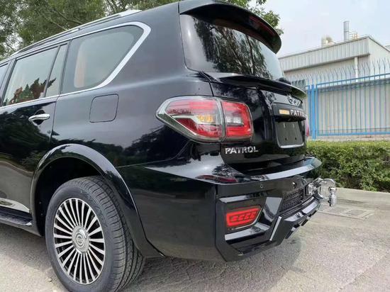 2019款日产途乐Y62中东4.0该车尾部设计高大威猛的感觉更加突出,其尾灯组整体采用了全透明处理,并融入了LED光源。