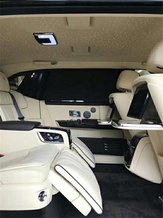 劳斯莱斯幻影加长版,4门4座版本 6.7T,V12,571匹马力,8速手自一体,双涡轮增压,长*宽*高5990*2018*1656,轴距3772。整车4年不限公里质保及保养 黑色车身彰显尊贵的身份,时下最流行的爱马仕橘色缝线搭配曜石黑内饰,绝无仅有的搭配。通过对铝的完美使用,庞大的车身控制在2745KG重,并采用全新的N74B68A双涡轮增压6.7T V12发动机,最大功率420KW,在1700转下就可以发挥最大扭矩900NM,与八速手自一体变速箱的的通力合作,使新幻影0-100Km/h的加速仅为5.4秒。