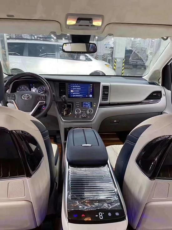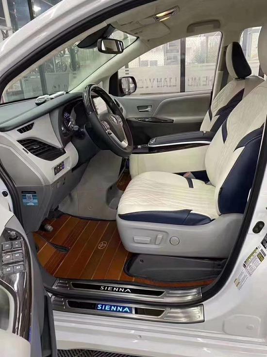 全新2020款丰田塞纳的内饰:桃木镶嵌的中控台更显格调高雅,方向盘集成多种功能,操作便利。方向盘集成多种功能,操作便利减少对安全的影响并且带有语音控制。丰田塞纳车舱宽阔,安静,座椅全部采用双色真皮。丰田塞纳它是这些中型MPV车型中唯一一款采用了全轮驱动方式的车型。只有当前轮打滑的时候,才会将动力传递给后轮,从而既降低了油耗又提升车辆的通过性和稳定性。丰田塞纳商务车在配置上增加了DVD、倒车影像、导航、氙气大灯和不锈钢镀铬装饰。