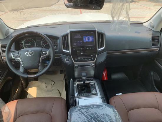 丰田酷路泽5700整个操控区域色调为深色系,仪表盘、方向盘和排挡等位置均配以桃木装点,尽显豪华质感。不但具有DVD导航,这款车的倒车影像还可以显示在内后视镜上;中央扶手箱还装备了冷藏箱,这些都与中规版车型有所不同。