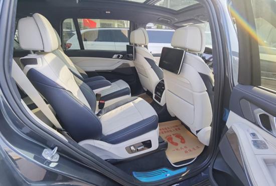 2020款宝马X7 (配置|询价) 3.0T M运动 卓越豪华 6座。灰车,蓝白内饰,6座,22轮,全车蓝白真皮内饰,豪华卓越包,M运动包,宝马个性化细木灰粒银,黑色前侧发动机罩,黑色排气管,液晶钥匙,后娱 DVD。