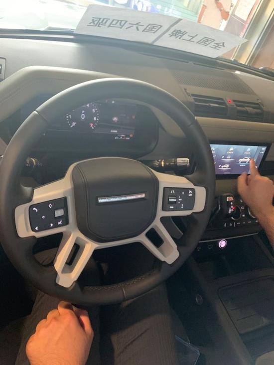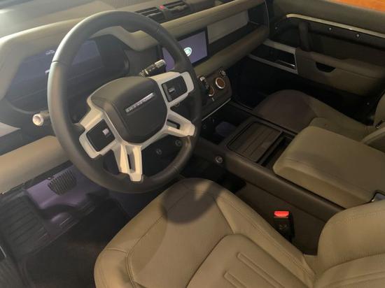 新车车头依旧使用了方方正正的设计元素,方形前灯组内有半圆形光源,前进气格栅的造型设计十分简洁并带有经典的“LAND ROVER”绿色logo,前机盖边缘的“DEFENDER”车型标志也得到了保留。前保险杠下部带有大面积的银色护板,整个前脸的层次感分明,也显得非常厚重。卫士的内饰设计变得不再简陋,中控台使用了涂层镁合金材质,进一步提升了内饰的耐用性。新车使用了全新的四辐式方向盘、12.3英寸全液晶仪表、10英寸中控屏幕,空调旋钮带有液晶显示屏,电子挡把位于中控屏下方,使用更加顺手。