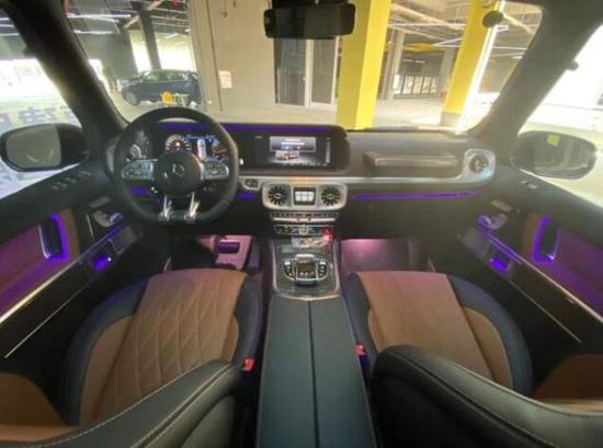 奔驰G63内饰上除配色差异外,新车还换装了全新造型的平底式AMG运动方向盘,其两侧配以打孔皮质包裹,下部镀铬装饰的造型与新G 500明显不同,看上去十分战斗。此外,全液晶仪表盘 中控大屏的双12.3英寸屏幕设计在新车上也没有缺席,营造出了浓郁的科技感。