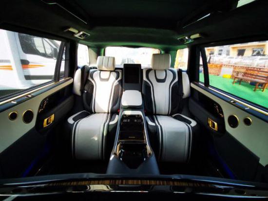 路虎皇家一号座椅真皮包覆打造出极其典雅精致豪华的感觉,三段式的沙发带通风加热按摩功能,腿托展开超长的腿部空间让您尽情的舒展,享受奢华舒适贵宾待遇。整车长宽高(mm)达到了5998*2073*1840,最小离地间隙达到了302mm,绝对是同级别中出色的数据。所幸仍旧在C1本的驾驶范围内,老板们自己就可以随时开出去爽一把。