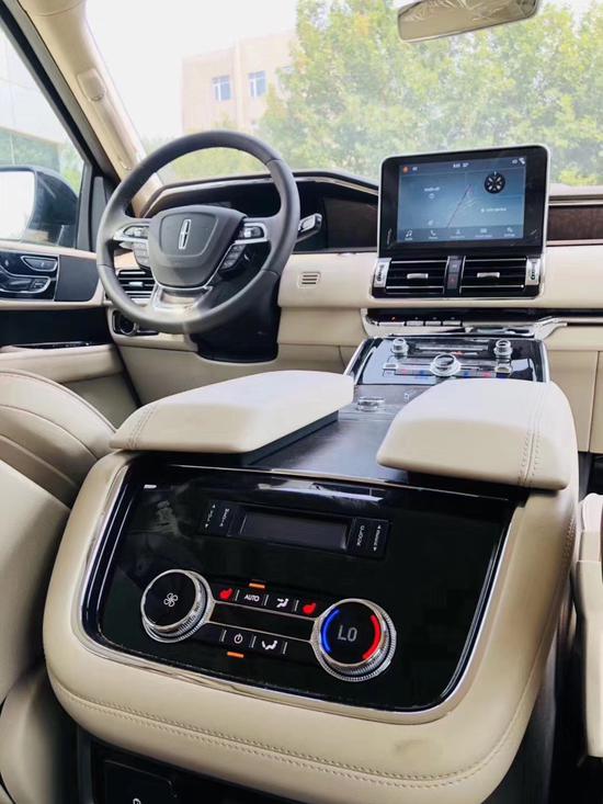 2020款林肯超级领袖一号内饰奢华程度可谓越野车中的模范,非常对得起它的身价,全部座椅均由真皮手工打造,第三排座椅可以依据搭车用途随意立起或折叠,以便有更富余的后备箱空间,尽显精美高档,做工细腻,质料上乘。