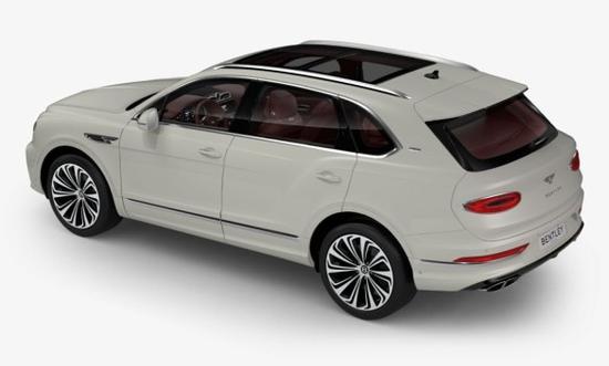 2021款宾利添越 (配置|询价)外观延续了现款车型优雅设计,细节方面有很大改变。采用全新LED大灯组,灯腔内镶嵌“水晶式”的日间行车灯。进气格栅内侧两边增加熏黑装饰条,让整个格栅显得更为立体。前包围造型也有所调整,层次感加强。