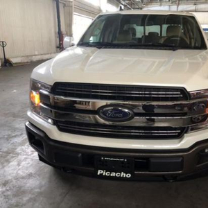 20款福特F150 (配置|询价)还有一个野性十足的地方是发动机舱盖上的两个散热口,和进气格栅也是同样颜色。福特F150血统纯正,拥有了无与伦比的车身刚度,整体车身肌肉感十足,威慑力表现的淋漓尽致。巨大的长方体蜂窝式格栅中间镶嵌着福特的大标,再加上全新设计的保险杠和发动机舱盖,使车头拥有了震撼的冲击感。车头给人一种很凌厉的气势,简约的线条勾勒出大而气派的感觉。
