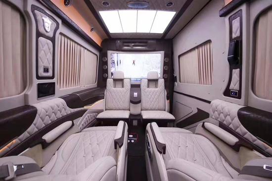 20全新进口奔驰斯宾特商旅车头顶可改成浪漫情怀满天星顶灯,犹如在静寂的夜空中翱翔,脚踏高档柚木地板,坐在私密的移动包厢内,老板能享用彻底私密的影音包间,具有如家般的精致小生活。