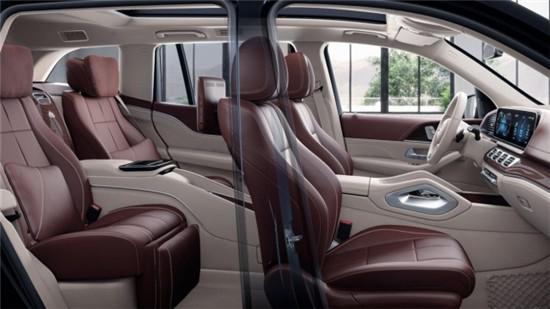 新车提供四座和五座两种布局,其中四座车型第二排独立座椅相比普通版GLS更加靠后,并且带有巨大的腿拖,其后排座椅最大倾斜角度大43.5度,后排腿部空间最大达1.34米。中央由冰箱、控制台、储物空间和手机无线充电台等进行贯穿,呈现出类似于迈巴赫S级 (配置|询价)一样的头等舱设计。空间方面,迈巴赫GLS采用了四座布局,其中第二排独立座椅相比普通版GLS更为靠后,同时还带有巨大的腿拖,而中央部分则是由控制台、储物空间和手机无线充电台等进行贯穿,并呈现出了类似于迈巴赫S级相同的头等舱设计。
