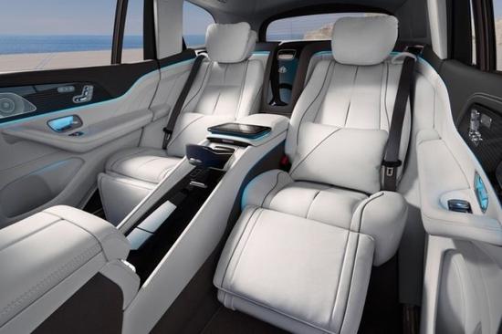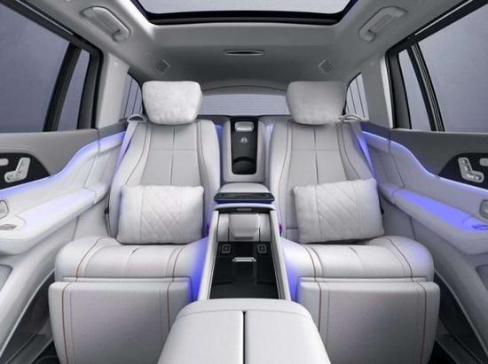 迈巴赫GLS600新车提供四座和五座两种布局,其中四座车型第二排独立座椅相比普通版GLS更加靠后,并且带有巨大的腿拖,其后排座椅最大倾斜角度大43.5度,后排腿部空间最大达1.34米。中央由冰箱、控制台、储物空间和手机无线充电台等进行贯穿,呈现出类似于迈巴赫S级 (配置|询价)一样的头等舱设计。