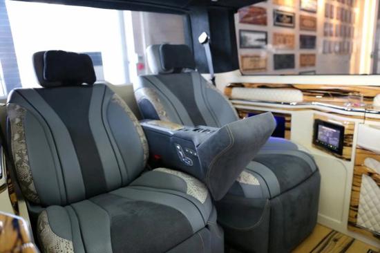 大众T6凯路威美杜莎版,既然归于一款高端商务房车的定位,那么其设计精髓必定于后舱贵宾区有相当的体现。那事实上也正如我们所想,迈入乘客舱的一瞬间,就能感受浓郁的古典情怀及奢华氛围感。