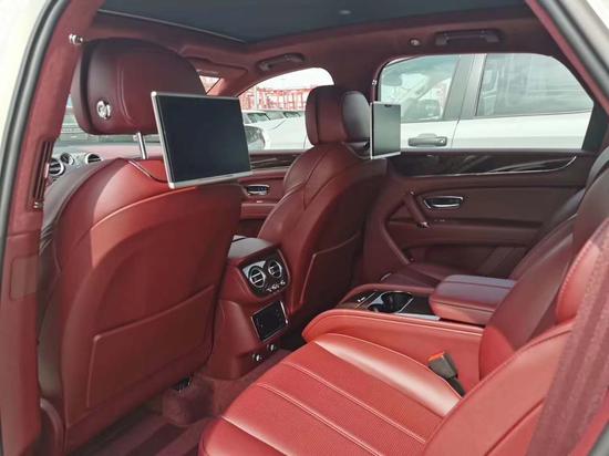 20款宾利添越后排宽大的座椅舒适性表现如前排一样优越,座椅质地也很柔软,包裹性和支撑性都很强,
