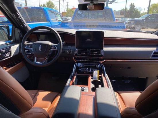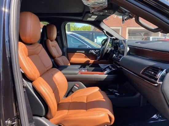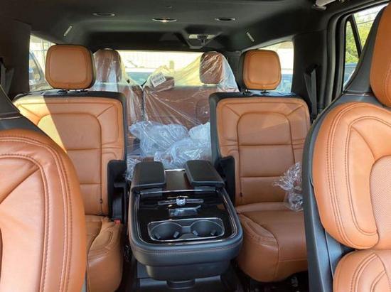20款林肯领航员的内饰非常奢华,多功能方向盘,中控台的造型与宽大的车身相呼应,新车全部真皮包裹座椅,内饰采用桃木搭配设计,高贵典雅,加高加大的车身除了增加内部空间外,还给人营造一种尊贵典雅的感觉。最新林肯领航员新车采用了2+2+3的座椅布局,第二排采用了两个独立座椅,座椅内侧均配有扶手,舒适度超强。