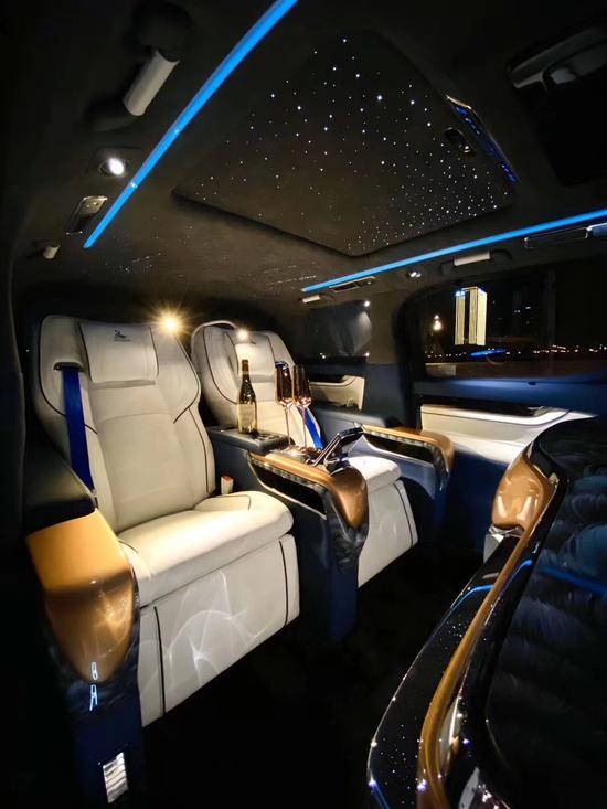 外观采用日本原装进口VELLFIRE套件改装而成,双层蓝色三透镜大灯犀利透彻,时尚霸气宽大前中网及前原装进口立体大包围显得整体外观高大尚,神秘的三角隐私玻璃