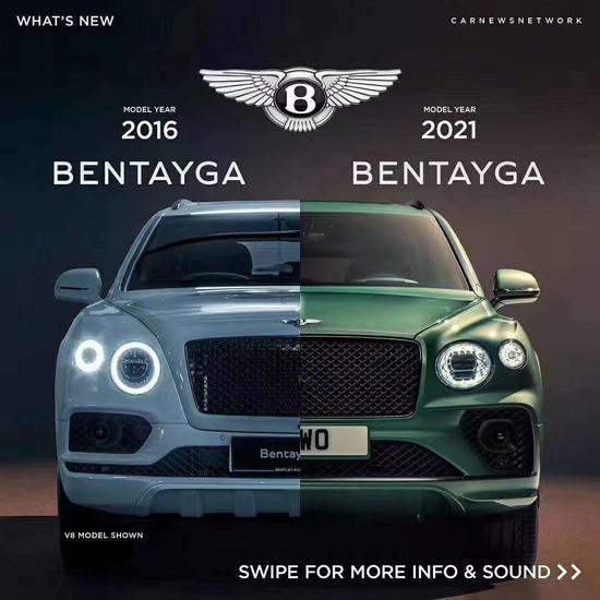 21款宾利添越外观进行了大幅升级,车辆前部和后部的每块面板均经过重新设计,设计灵感汲取自全新欧陆 (配置|询价)GT和全新飞驰 (配置|询价)。矩阵式进气格栅的角度更为直立,整体面积也进一步增大。