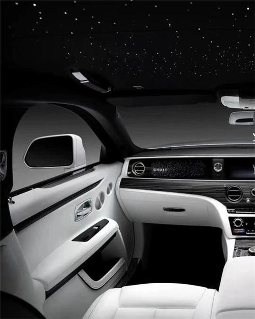 进入到车内,映入眼帘的是尽显奢华的星空顶。在此基础上,新车副驾前方增加了独有的星光饰板,以850颗星星环绕散发亮光的“Ghost”车名,只有在车辆启动时,发光的星簇及字标才全然可见。为了保证静谧性,新车隔音材料超过100kg,就轮胎内都有超轻的隔音泡沫填充。