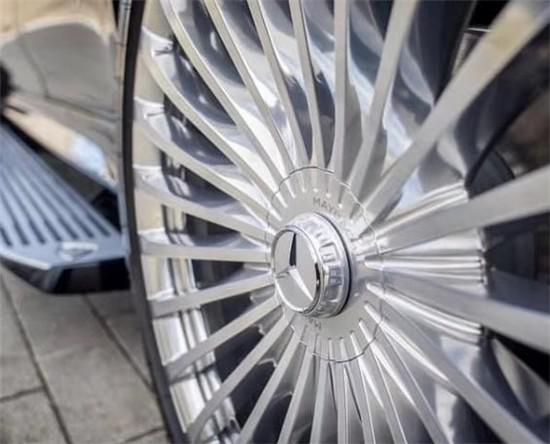 车身侧面造型很扎实看起来很厚重,并在D柱之上镶嵌迈巴赫专属LOGO,同时车窗周边的镀铬装饰也凸显出自己的身份,整体的车身设计简洁而干练。与此同时,为了更好地体现运动感和平衡设计,新车配备了多幅熏黑配色的轮圈,尺寸更是达到了22英寸。