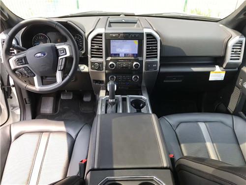 进入内饰最明显的是拉丝铝装饰的大方向盘,并且多了记忆、加热和调节功能;白金版F150选用双区自动空调,出风口上还多了镀铬装饰;适中的8寸液晶显示屏提升了一丝科教感。