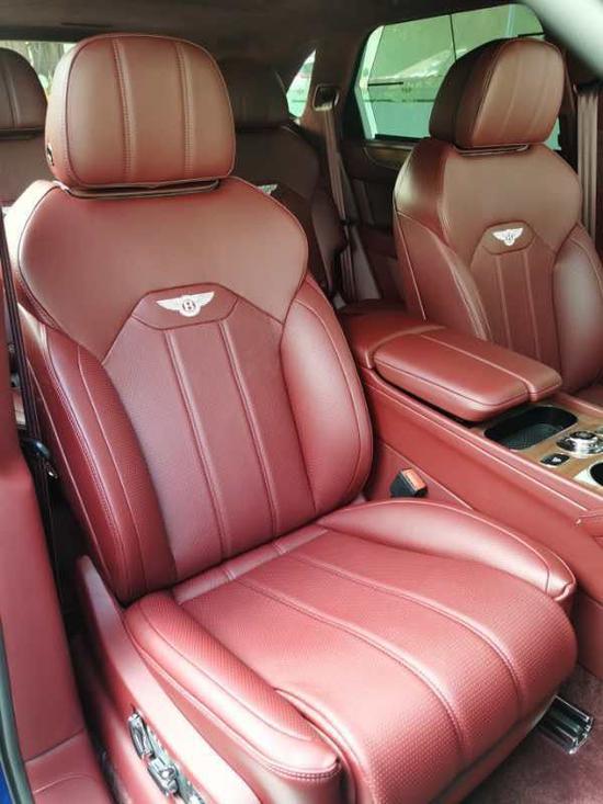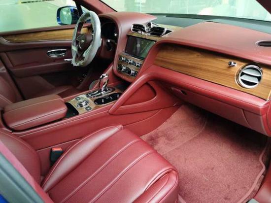 外观:亮片蓝内饰:板球红选装配置:特别定制外漆-纯色漆-金属外漆座椅刺绣宾利徽章前后舒适座椅套件