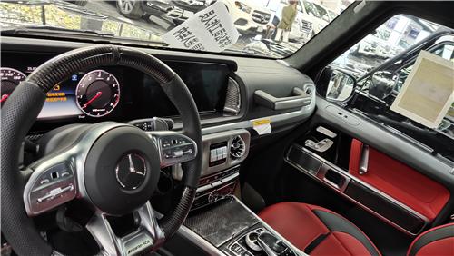 内饰方面,新G63保留了新G500的整体设计,除配色差异外,新车还换装了全新造型的平底式AMG运动方向盘,其两侧配以打孔皮质包裹,下部镀铬装饰的造型也与新G 500明显不同,看上去十分战斗。此外,全液晶仪表盘+中控大屏的双12.3英寸屏幕设计在新车上也没有缺席,营造出了浓郁的科技感。