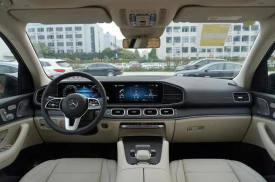 坐进车内,迎面扑来的是浓浓的豪华气息。整个车内采用了拼色设计,中间由一块贯穿式的镀铬饰板相连接,突显出明显的层次感。整个内饰都由大量的皮质材料包裹,营造出极强的豪华感。而现款车型的中控终于采用了大家期待已久的联屏设计,12.3英寸的液晶仪表盘搭配上12.3英寸的触控液晶屏营造出极强的内饰高级感和科技感。与大部分的奔驰车型一样,GLE 450同样使用了换挡的设计,显得中控台的位置十分的简洁。