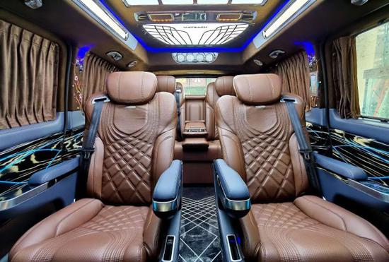 奔驰迈巴赫版商务VS980内饰淋漓尽致的豪华,奔驰是用实木的专家,在奔驰的豪华车车型上都可以看到大面积的实木运用。摒弃了此前车型大面积的平直线条后,奔驰商务车VS680L展现出的是更加立体豪华的中控效果,这种感觉让驾驶员和乘客都能保持内心的宁静,也许这就是奔驰的豪华语言吧。