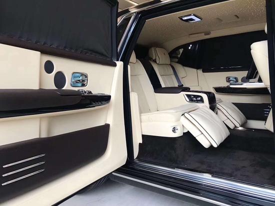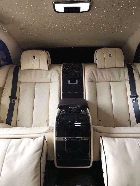 劳斯莱斯幻影后排才是重中之重,电动折叠板和后排影院系统被巧妙的隐藏在前排座椅的椅背后,只需轻触按钮,便可以自如收放桌板和影院系统,带来完美的剧院体验。后排中央固定扶手做了重点优化,其中国可容纳带有威士忌酒具的酒柜、香槟酒具和冷藏箱,方便乘客畅快交谈,后排座椅角度可以任意调节,这一设计让客户无需转头便可视线自如交流。整个车厢内饰全部以最精美的高档材料装饰,使车内极具触感。