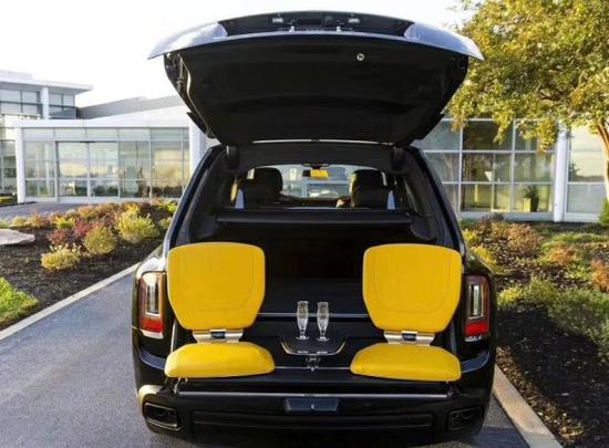 Black Badge库里南是选装了揽景坐席的车型。这两张要价接近40万元人民币的椅子能够给车主提供一份周末奔赴远郊的惬意,你只需要额外准备上好的威士忌和吊具就行。