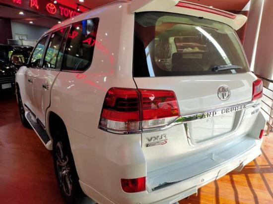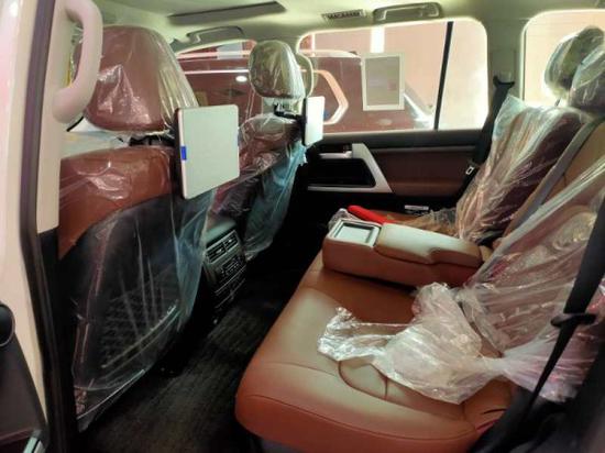 20款酷路泽5700外观带有前后大包围,前脸镀铬条中镶嵌流水灯,20寸的抛光轮毂,尾翼高位刹车灯,全车 镀铬装饰,而且外观的前车标是镜面的,这就是ACC雷达测距系统也叫自适应巡航系统,尾部是VXR标识,这是顶配的象征。酷路泽5700车内看着更明亮、 同时也更显豪华,更符合中国消费者对“豪华”的定义。