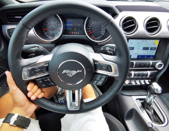 20款福特野马标志性的加长引擎盖和较短的后甲板标志着40年的历史,正如如下这些经典的设计风格也成为了野马自上世纪六十年代以来的标志一样:车身侧面的C-开口、三元尾灯以及在水箱护罩中间的一匹奔驰着的骏马标志。