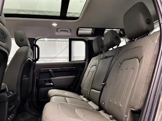 2020款路虎卫士2.0柴油,Gondwana Stine色/土黄色皮+布混合内饰选装配置:主动式后桥差速锁全景天窗前排座椅12向调节带加热。