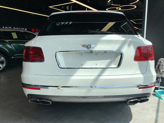 宾利添越车尾部分,新款添越使用了宾利最新家族式的尾部设计,整体看上去十分简洁、椭圆形尾灯犹如两颗珠宝,十分璀璨。 双边共四出的排气,标志着新款宾利添越依然有着十分强悍的性能。
