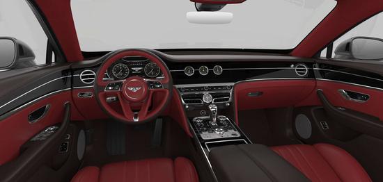 内饰部分,全新一代飞驰采用最新的飞翼式家族设计风格。新车内饰采用双色皮革包裹,搭配做工精细的金属饰条和双色实木饰板,进一步体现了它的奢华感。宾利针对真皮门板饰面首次引入的立体菱形真皮内饰设计,在没有缝线的基础上通过皮革起伏呈现出层次感。各种旋钮处及出风口装饰等处采用了类钻石贴片饰面,根据宾利官方的描述,这样的贴片全车最多可以达到5331个。宾利独创的的三面翻转式的中控触摸屏也出现在了全新一代飞驰上,其中中控屏尺寸为12.3英寸,优化后的车机系统UI包含更多的功能。