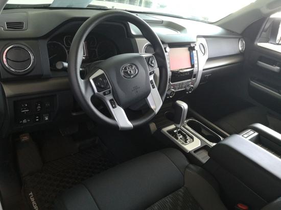 20款丰田坦途TRD越野版中控区被银灰色的面板划分为驾驶区与乘坐区,在宽大的车身内排挡杆更为接近驾驶员更便于操作,坦途内饰简洁大方依旧突出了实用特点,室内色彩的精致搭配,让整个内部空间既充满质感又倍感时尚。