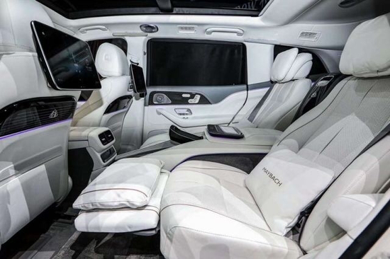 奔驰迈巴赫GLS (配置|询价)600空间方面,迈巴赫GLS采用了四座布局,其中第排独立座椅相比普通版GLS更为靠后,同时还带有巨大的腿拖,而中央部分则是由控制台、储物空间和手机无线充电台等进行贯穿,并呈现出了类似于迈巴赫S级 (配置|询价)相同的头等舱设计。