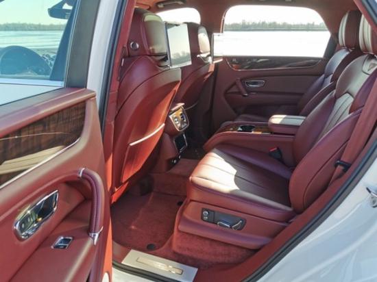 宾利添越后排宽大的座椅舒适性表现如前排一样优越,座椅质地也很柔软,包裹性和支撑性都很强,刺绣标示清晰夺目。四座版添越后排座椅功能更加丰富,但是相比五座版,唯一让人觉得遗憾的是靠背不可以折叠,因此备箱空间并不是很灵活。后排娱乐系统分辨率极高,画质非常清