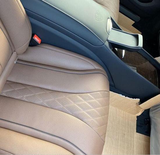 奔驰迈巴赫s650的内饰变化不大,整体造型布局维持原样,关键在于选材和用料方面又进一步提升了,越来越像豪华游艇。中控台大面积采用世界各地的高档皮革和实木覆盖,这块木头可能来自于某个悬崖上的同一棵树,皮革可能是多少道精细手工工艺打造。新车依旧搭载的是12.3英寸大屏幕,显示效果超群,但是它不支持触控。中间这个时钟是iwc牌子的,这一点与普通版车型上的“无名氏”钟相比立刻从细节上体现出了档次的不同。