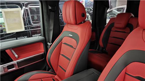 奔驰G63:21寸AMG轮 designo真皮内饰 翻毛皮方向盘 座椅加热 通风 按摩座椅 后座椅加热 柏林之声音响 全液晶仪表 LDE光束大灯,360环车影像 盲点辅助 前后雷达 雷达测距 红色卡钳,同样采用前悬改为双插臂独立悬挂、电子助力转向、更大的内部空间、新仪表盘和多项奔驰最新的电子安全系统。车体增宽了122mm,轴距增加40mm达到2890mm,整车加长了53mm。老款奔驰G能用德军的直升机运载,现在加宽了122mm,希望还能装得下。同时还增配360环影,64色氛围灯和几何多光束大灯。
