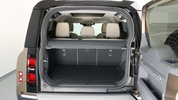 走进车内,新款卫士的内饰设计发生了翻天覆地的变化,粗狂的设计线条、精美的内饰做工和豪华感十足的用料,将豪放的越野风格与细腻的豪华之美完美融合,镁铝合金的双横梁仪表台和全铝材质的四幅式多功能方向盘,让车内散发出越野的粗狂感,而12.3英寸全液晶仪表盘、10英寸触控液晶屏以及全新的HUD抬头显示系统的融入,也让内饰的科技感得到很大程度的提升。
