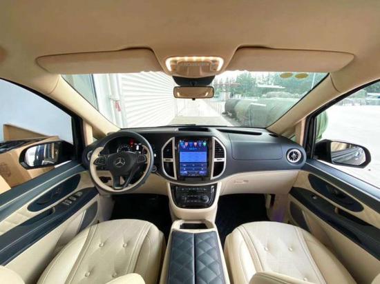奔驰威霆改装高顶隔断迈巴赫版VS680全新三幅式设计的多功能方向盘、立体悬浮式的8.1寸中控大屏,秉承奔驰豪华轿车的comand娱乐系统,让迈巴赫VS680的科技感、驾驶体验,有了相当的提升。COMAND系统触摸板,能在方寸间实现单点或多点触控操作,智能识别手指运动轨迹,无论是滑动、缩放,还是手写输入,都可快速识别并进行反馈。这个中控的设计在相同车型中也是独一无二的,具备全景影像、导航、视频、音乐娱乐等功能,触摸控制,且触控反应灵敏。奔驰威霆改装高顶隔断迈巴赫版VS680拥有12升超大扶手冰箱也是十分贴心的,旅途上可随时为您提供一听冰爽的可乐。