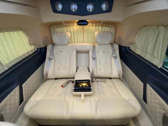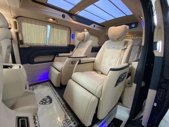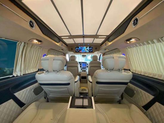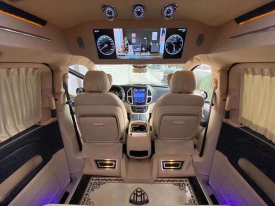 奔驰威霆改装高顶隔断迈巴赫版VS680的迈巴赫顶灯的设计采用了来自迈巴赫62S光纤顶灯的设计,在迈巴赫光纤顶灯的照耀下,不仅仅能够保证车内的照明需求,可选配七彩变色灯,带来视觉冲击感,内饰也显得贵气十足。奔驰威霆改装高顶隔断迈巴赫版VS680贵宾舱上部,迈巴赫光纤顶灯搭配意大利进口ALCANTARA麂绒皮包覆,既为乘客带了贴心享受,又为奔驰威霆改装高顶隔断迈巴赫版VS680带来更奢侈的贵宾感。
