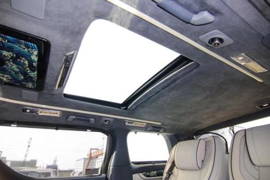 整车采用了米色作为主色调,座椅以及门边搭配了经典的编织纹皮,低调又不失奢华,这台车最与众不同的地方就是它的星空的车顶和天窗,特别的精致;侧窗部分最大的亮点就是采用了雾化玻璃和遮阳帘的设计,既保证了私密性,又可以随时观看车外的场景,所有的电控系统,都可以在航空座椅中间的触控屏上进行操作。
